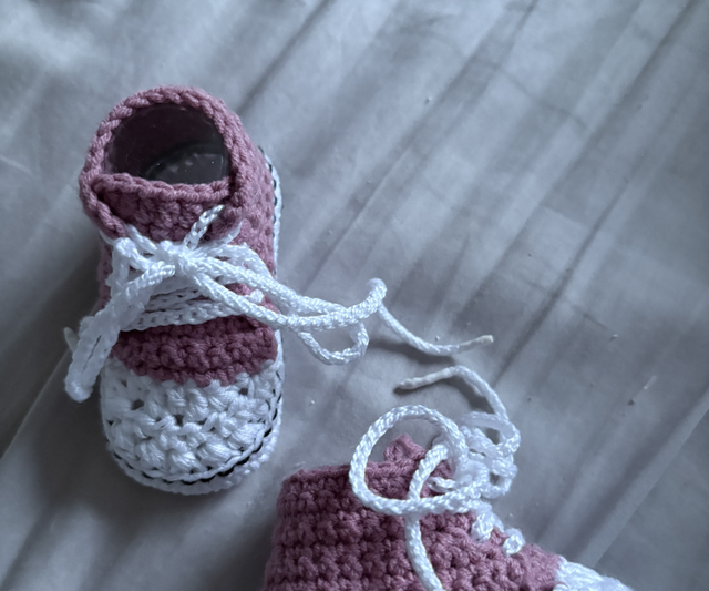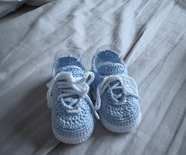 Baby hand crochet converse shoes available in various colours and sizes.